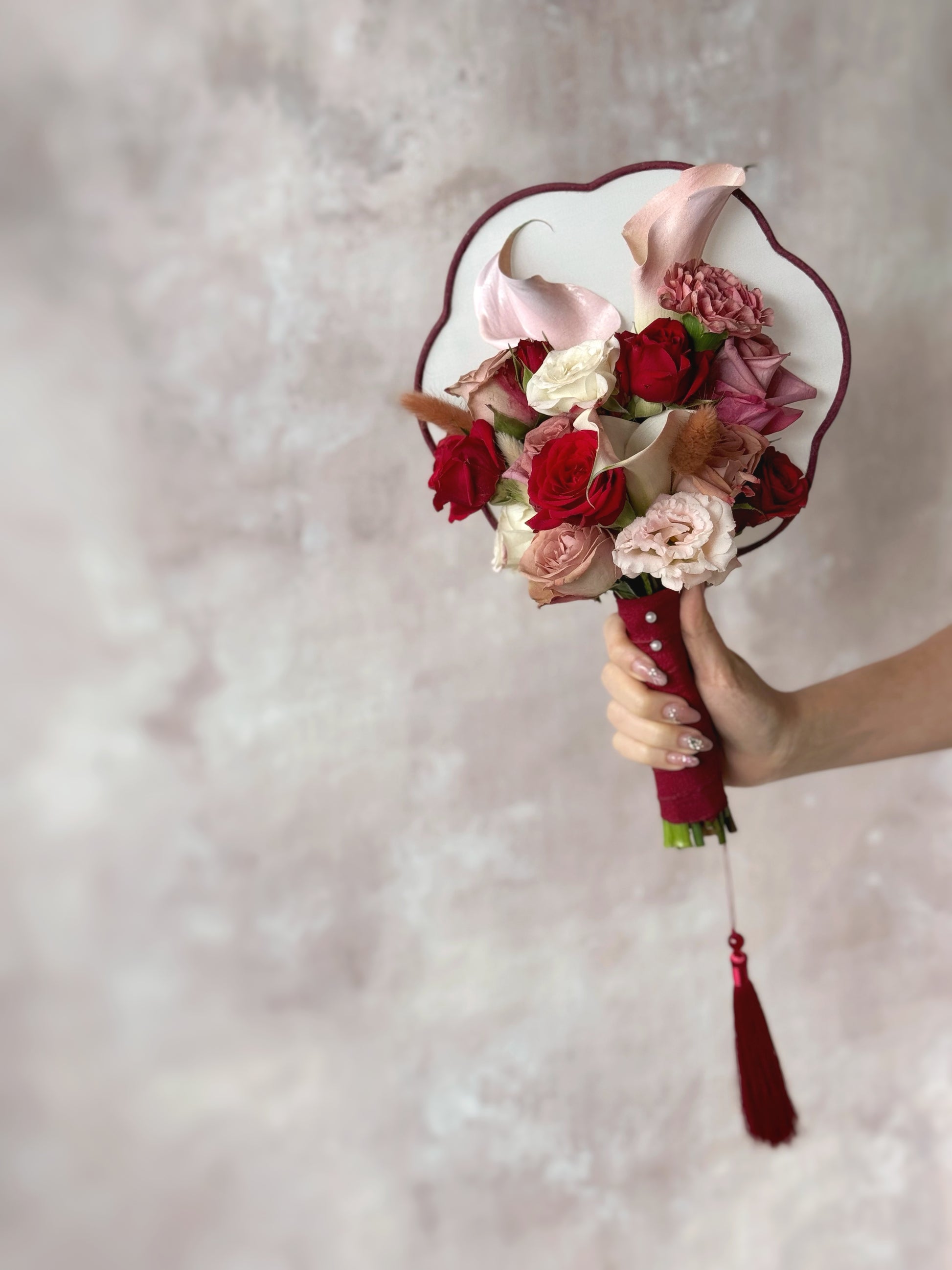 Chic and modern oriental style bridal fan in fresh flowers arrangement, specially made for brides who seek for the extraordinary.