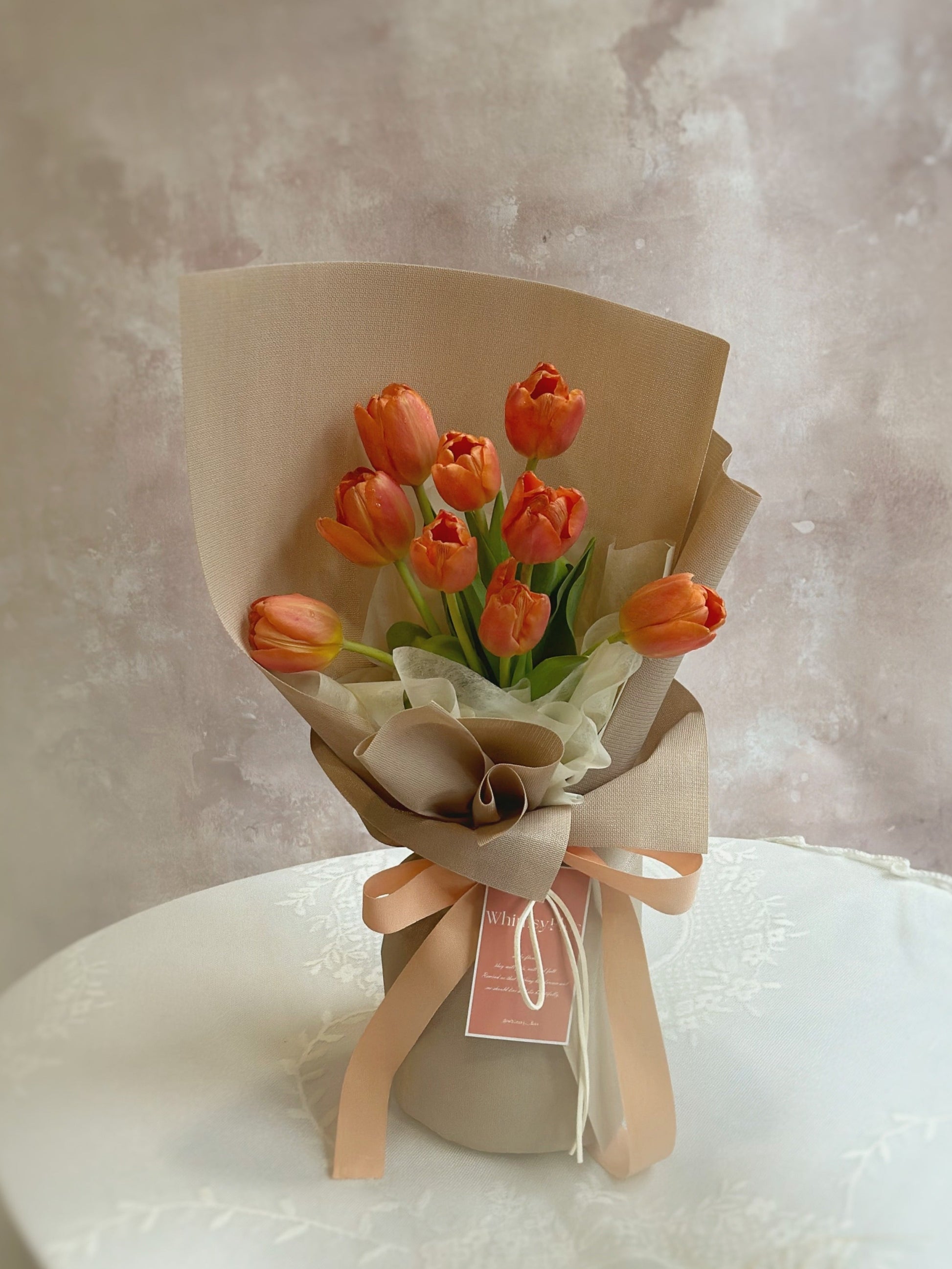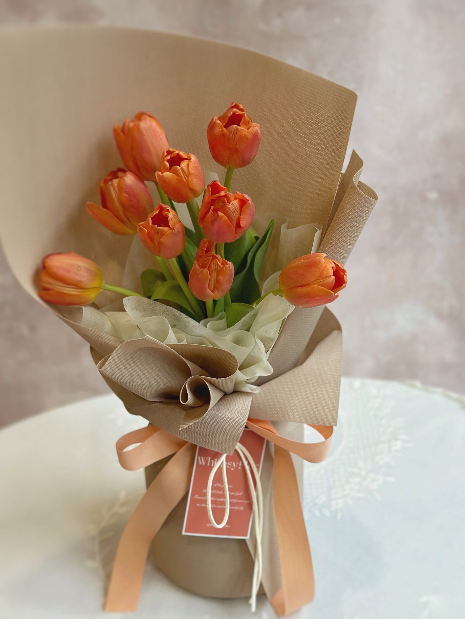 Bouquet's recipe - 9-10 stalks of fresh orange tulips