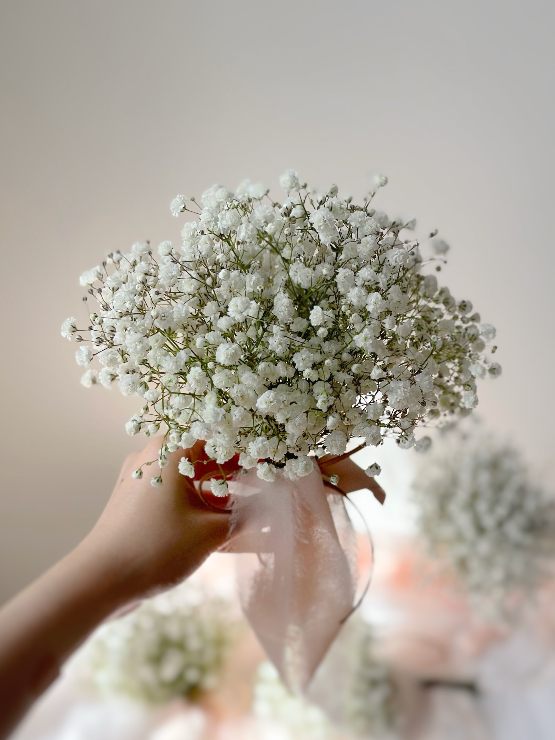 People often think of baby breath just as filler but when they are arranged together they take on a romantic cloud-like & ethereal feels. This bouquet design is suitable for your bridesmaid team too!