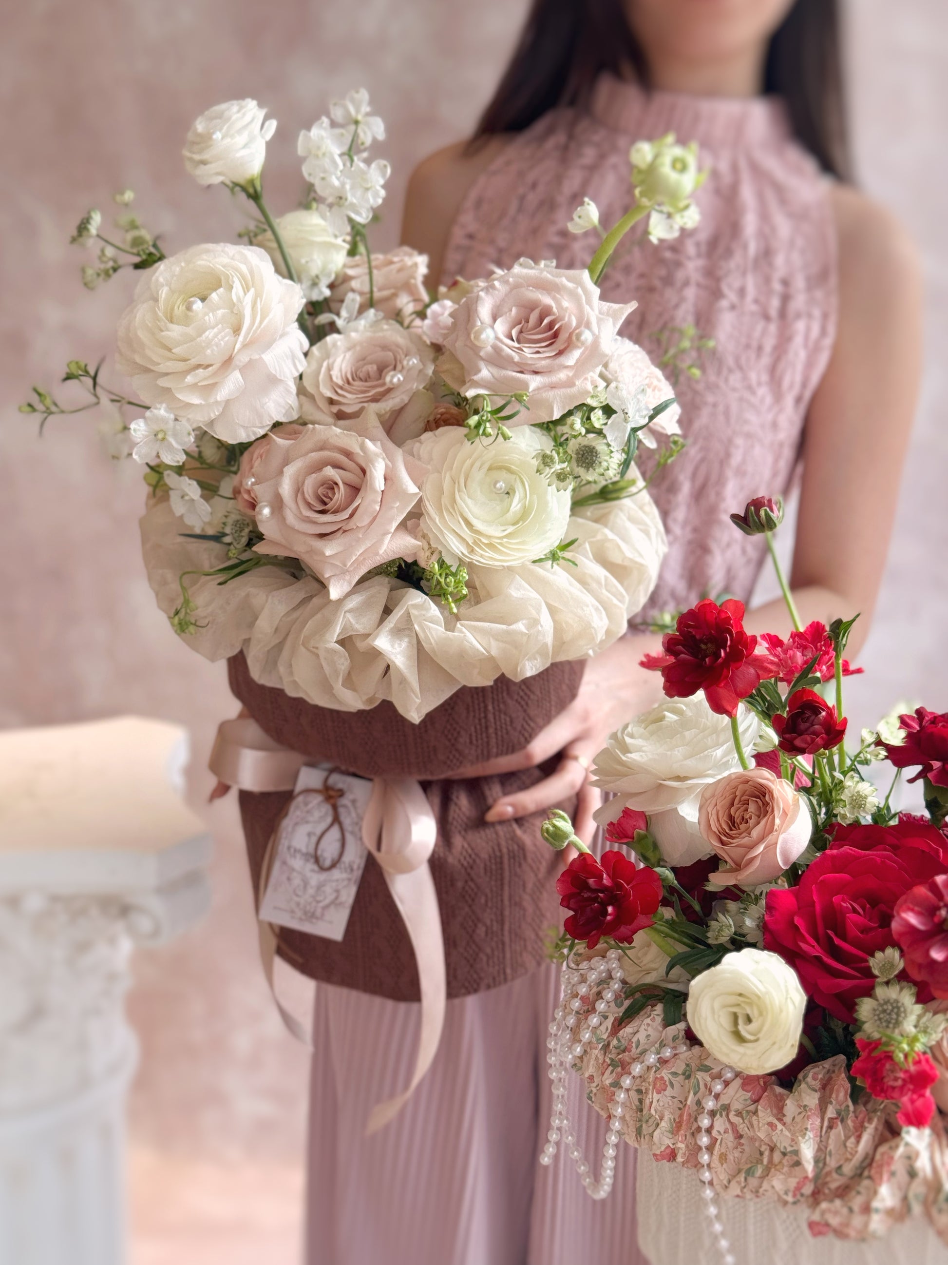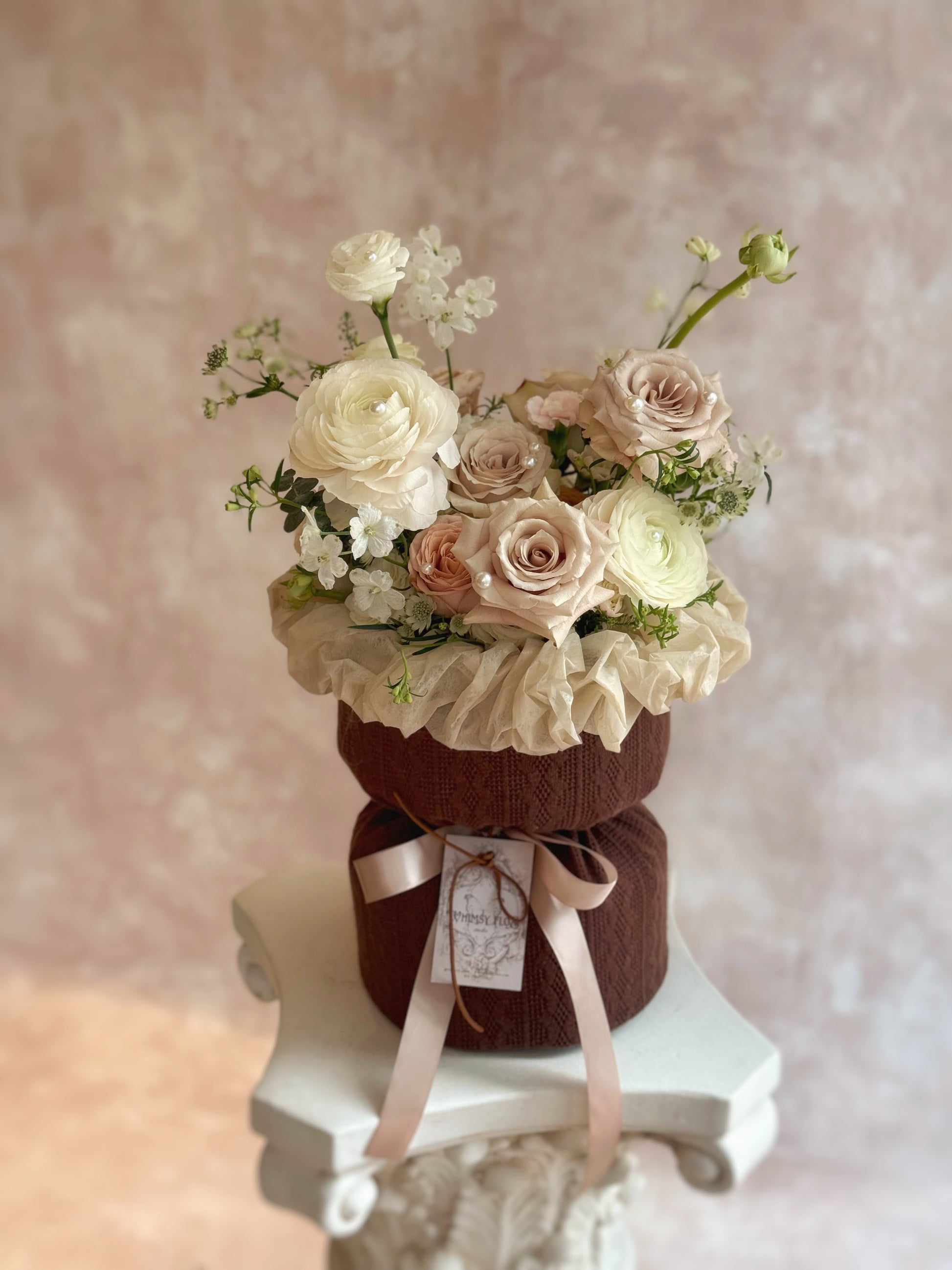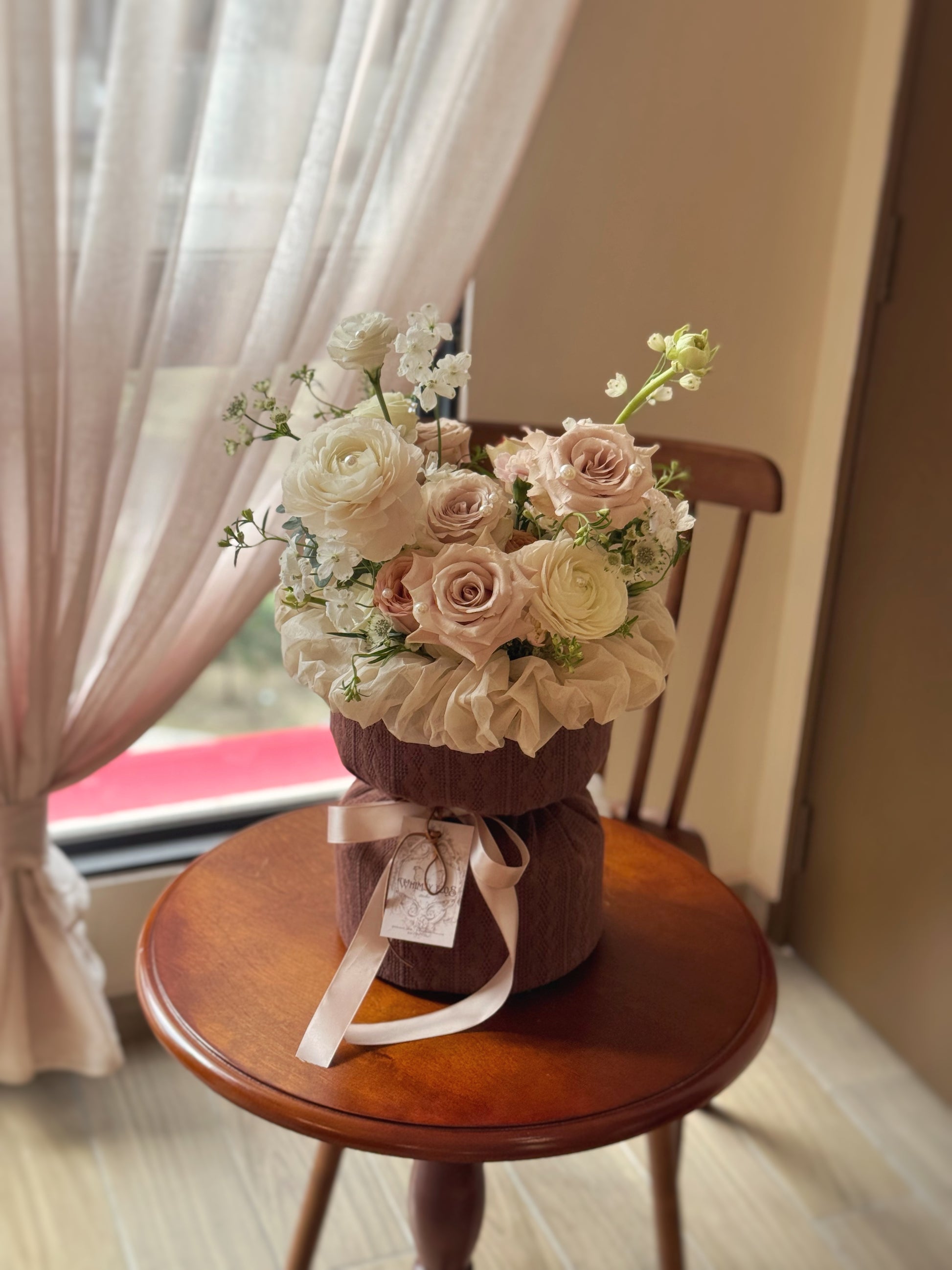 Kindly note that on rare occasions, the flowers of choice are subject to change depending on availability and even so the color theme and overall style of the final product will remain unchanged. Please be mindful that the final product may look differ in appearance as every flowers bloom in its own pace and not all of them will have the same shapes, sizes and colors.